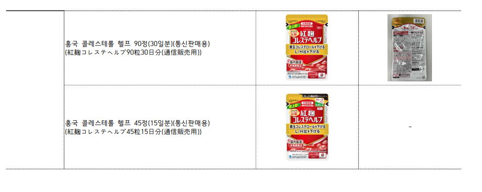 식약처에서 발표한 일본 고바야시 제약 붉은 누룩 건강식품