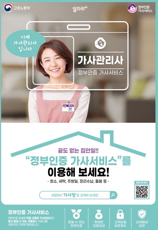 2022년 6월 16일 『가사근로자의 고용개선 등에 관한 법률』 시행에 따라 고품질 맞춤형 서비스와, 가사관리사의 권리보장, 가사서비스 시장의 활성화 기반을 위한 초석이 마련되었습니다.