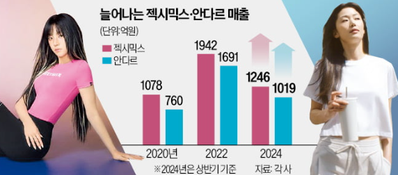 올해 상반기 매출은 젝시믹스가 1,246억원, 안다르가 1,019억원이고 영업이익은 젝시믹스가 154억원 안다르가 127억원으로 젝시믹스가 조금 더 앞서고 있습니다.