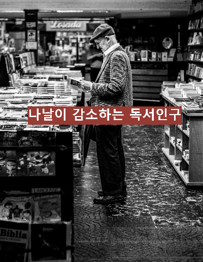 그나마 읽는 책도 경제, 경영, 자기계발서 등 실용 서적 분야가 대부분으로 출판업계에서는 교과서나 자기계발서 외에는 손익분기점을 넘기는 서적이 거의 없고 문학 장르 서적의 출판은 출판사 입장에서는 도전이라고 하니 안타까운 현실입니다.