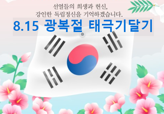 제79주년 광복절을 맞아 국가상징인 태극기를 게양하여 국권 회복을 경축하여야 합니다.