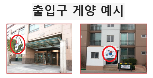 2. 세대별 국기 꽂이가 없는 아파트의 경우 각 동 지상 출입구에 게양
