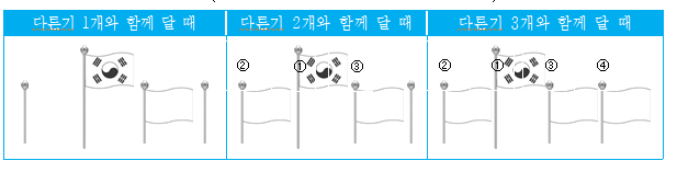 * 게양 대상: 관공서, 가정, 민간기업과 단체, 주요도로변 등